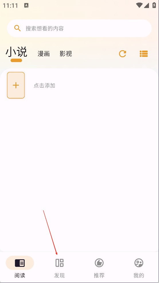 4、界面简单,发现、阅读和我的三大功能模块,很简洁。