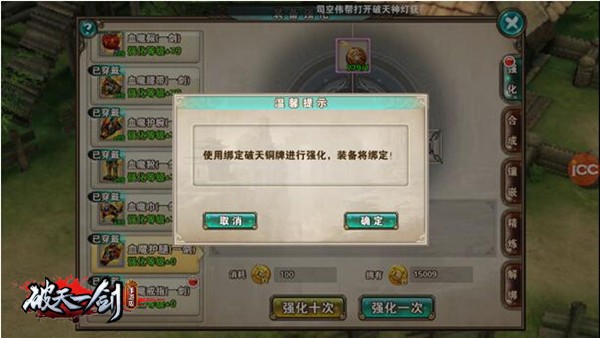 当您在畅游《破天一剑》手游为您创造的武侠世界时,装备自然是闯荡江湖不可或缺的,辛苦升级的装备如果不能绑定,是不是会有一些缺乏安全感呢?在新版本中,游戏加入了装备绑定与解绑的机制,当玩家使用绑定材料对装备进行强化时,会出现一个装备绑定的提示,点击确定即可将装备的状态变为绑定状态。