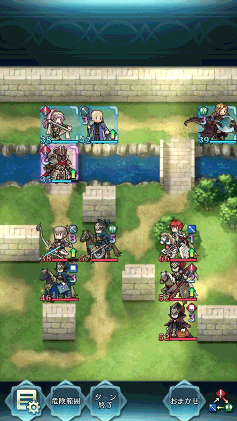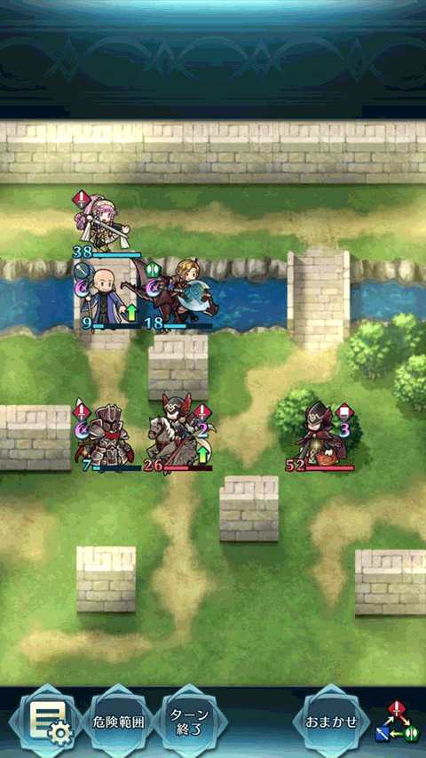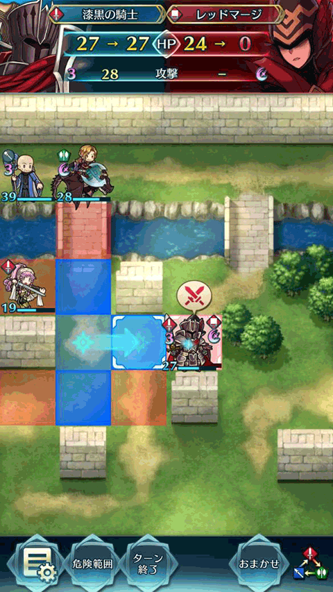 小黑一刀黑月光剁了拓海,里夫过来奶一小口,奥利薇亚再动走开。纳西恩左移一格准备硬刚飞刃狗粮。敌方回合两个骑兵先后撞死,日乃香色诱纳西恩自己被打残进入恐慌线。后面的红剑红法卡位无法补刀。