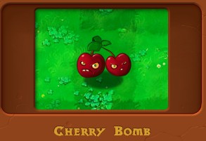 樱桃炸弹种植后会在1秒左右的时间内爆炸,爆炸后会给以其自身为中心,半径为3x3格的圆内的僵尸以90点伤害,为灰烬效果,爆炸后消失。