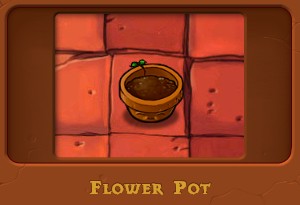 花盆是唯一可以直接种在屋顶的植物,其他植物可以种在他上面。他自己没有攻击力,防御力也很弱(300)。在屋顶战,每关开始时会提供3至5列花盆。