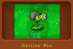 机枪射手可以一次射出四颗豌豆攻击敌人,不过必须种植在双发射手上。