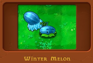 “冰”瓜能够丢出的冰冻的西瓜,让一定范围内僵尸缓慢下来(速度折半,溅射范围依然减速,对雪橇车僵尸无法减速。)。属于投掷植物。不过必须种植在西瓜投手上。