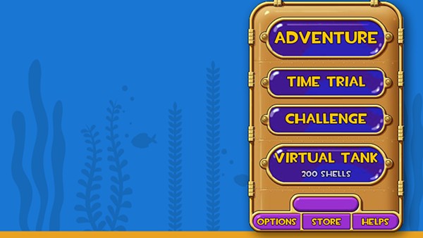 这里是真正你自己的世界!你所要做的第一件事就是去商店购买小鱼、更换背景或是作响赢得升级等等。但是要注意在这里所花费的钱可不是前三个模式中的金钱,而是以贝壳来作为货币单位。开始的时候你只有200个贝壳,但是你可以在完成前三个游戏模式的同时得到更多的贝壳来构建你喜欢的水族乐园。你所买的小鱼都不会死,但是你最好每天喂食保持让它们的健康。