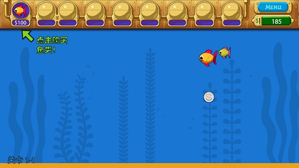 3、当有足够的金币可以购买鱼类,鱼会给你生产金币;
