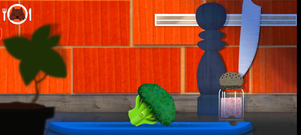 2、游戏内如图,滑动屏幕左边会显示食物、滑动右边则显示厨具;
