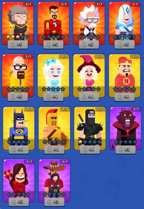 新手从紫色【神射手】开始,从小编的体验来看,紫色最容易拿到碎片升星,通过前30章问题不大;而红色英雄属性成长高,中后期章节必备。