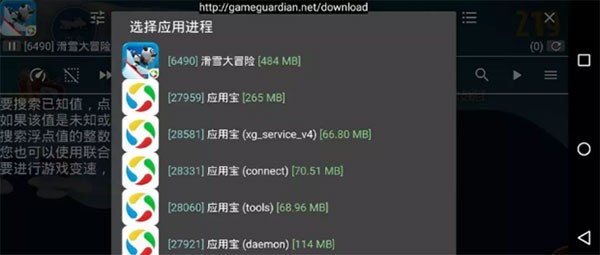 2、进入游戏后,点击gg的悬浮球,找到你正在运行的游戏