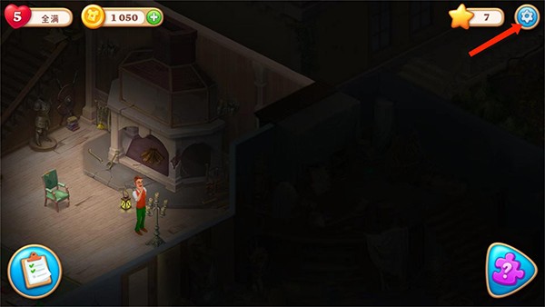 1、打开奇屋寻踪游戏,进入游戏界面,选择右上角【齿轮】图标,