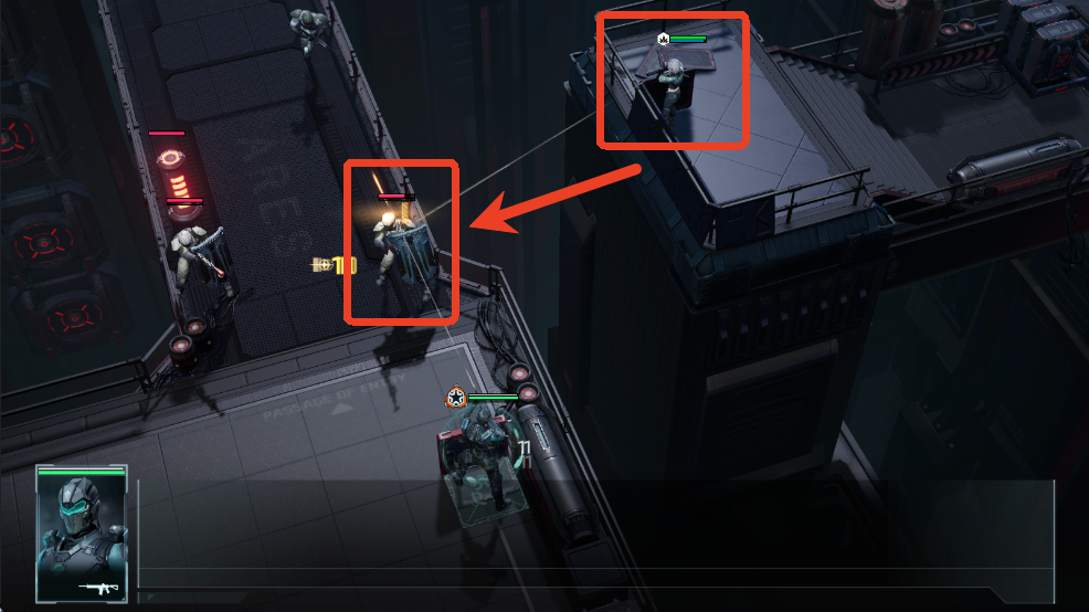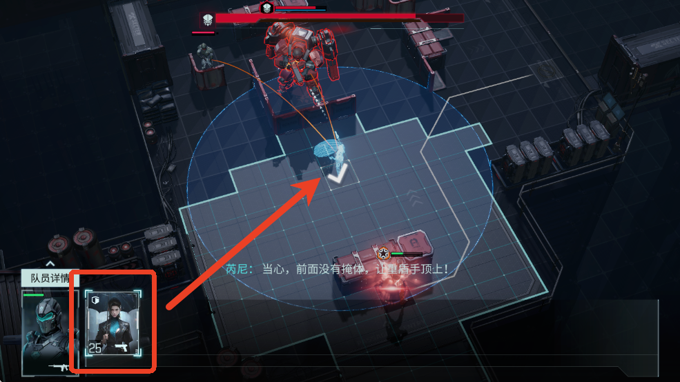6、部署队友时可以通过观察威胁线来判断敌人的侧击情况,红色线代表敌人可侧击我方,橙色线代表敌人的攻击会被掩体挡住。