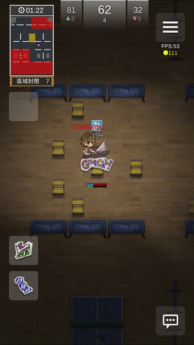 3、回到游戏大厅,点击黑板图标即可开始游戏;当你处于人型状态时,你需要前往空地上拾取物品,并利用它们来隐藏自己;同时,你还可以使用指南针来查看药水的位置;