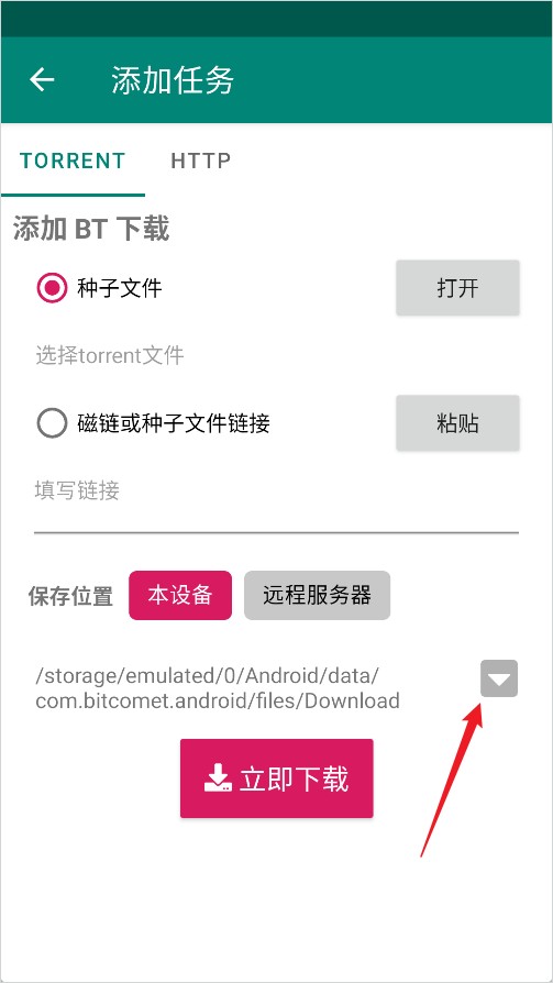 2、进入添加任务页面后,点击保存位置右侧的“倒三角”图标。