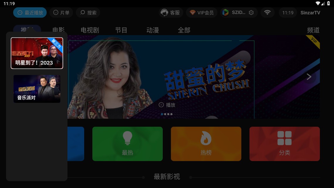 sinzarTV版是一款专为电视TV打造的视频播放器。在线全站采用影音播放器播放,播放速度流畅,新片资源齐全,更新速度快,并可下载缓存。打造新疆省真正意义上的全类别、高品质的纯视频生态APP。以用户体验为主,始终把用户体验放在第一位。感兴趣的网友们赶快来下载试试吧!