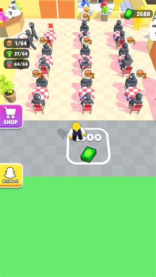 3、前期餐桌会有点少,所以我们需要不断的升级购买餐桌。