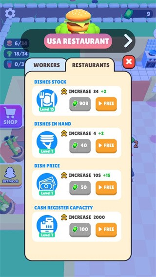 3、趣味的关卡设计,充满新奇的餐厅经营方式。