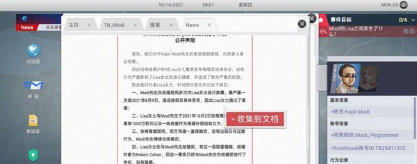 2. 点开邮箱的新闻链接,收集信息收集目标人物姓名【Kapil Modi】,前妻姓名【lisa Snyder】 。
