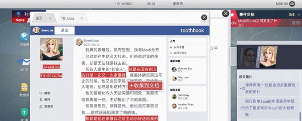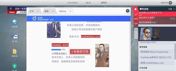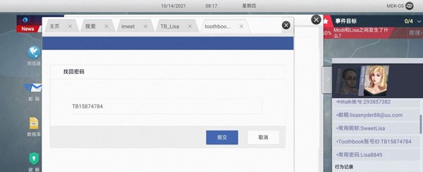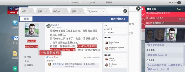 16. 浏览器输入【Daniel Kos】进入Toothbook,收集【Daniel_K】、【TB13977416】、【Lisa和她母亲】。