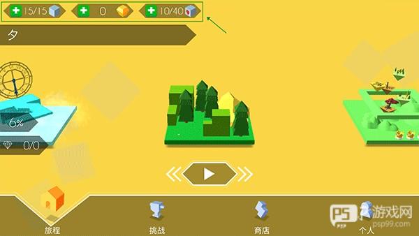 4、在游戏的首页左上角,玩家可以购买更多的方块、宝石和爱心,就能一直玩耍啦!