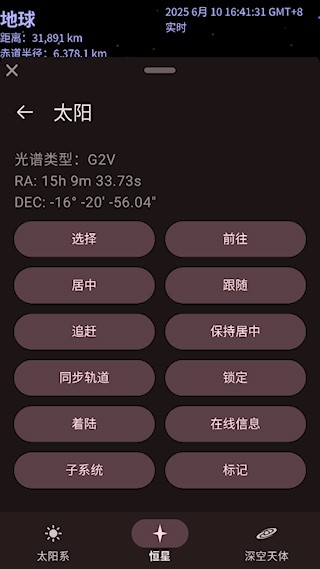 3、点击星体名称后会显示多个选项,选择前往