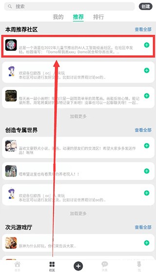 3、在该社区中点击底部+按钮;