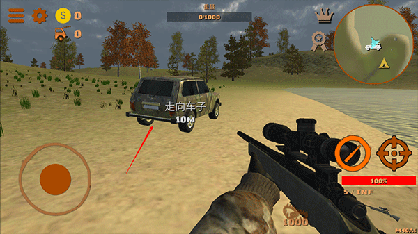 1、拿起你的步枪和弹药,然后出发去寻找不同种类的动物;