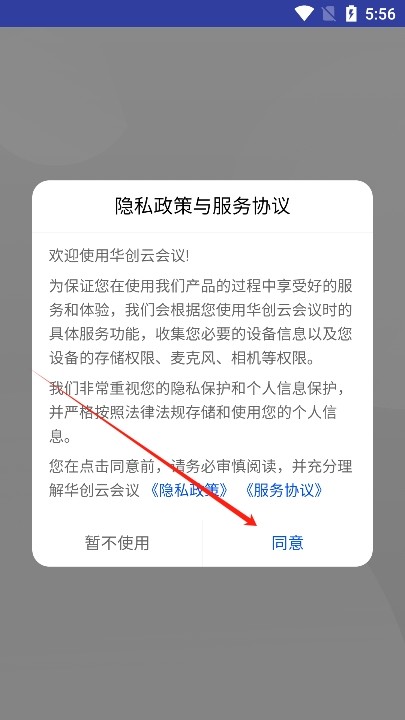 2、进入后阅读并同意华创云会议app的用户协议