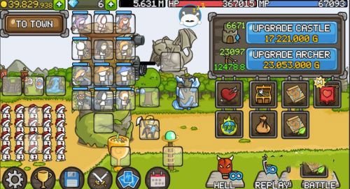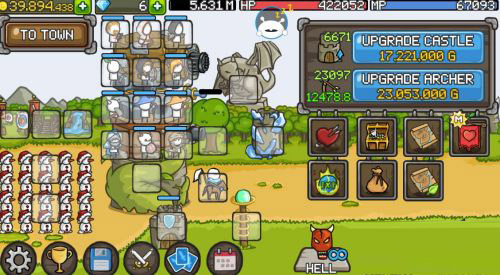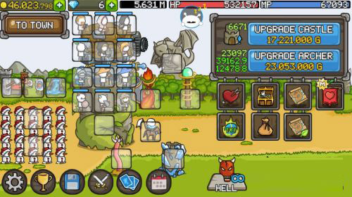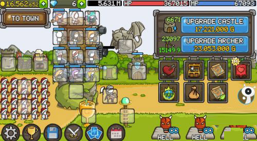 1、进入成长城堡游戏后,可以升级城堡和升级普通弓箭手来提升战力。
