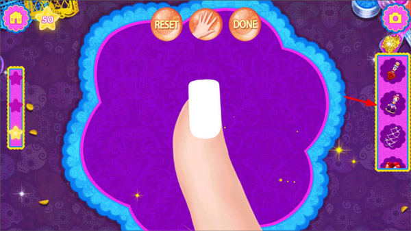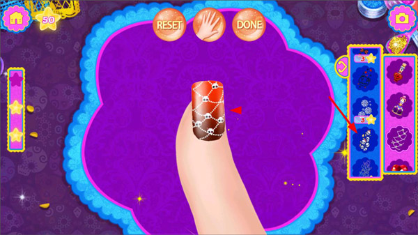 4、涂好指甲油后,玩家可以选择工具栏中的装饰品,给指甲添加装饰;