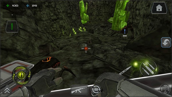2、左边控制人物的移动,右边控制射击,需要收集出现在各个地方的资源,保护好自己消灭入侵的僵尸。