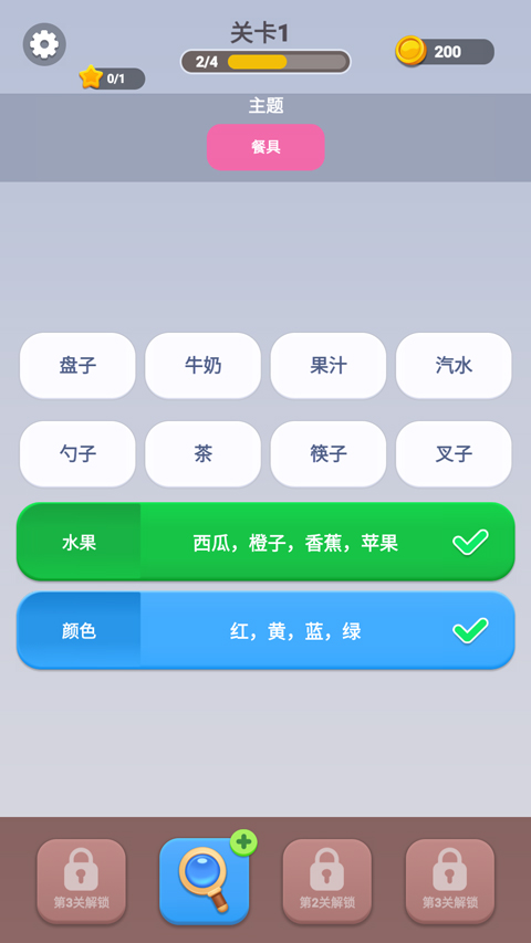 3、游戏难度会逐渐提升,词语会越来越多样,分类也会越发复杂。