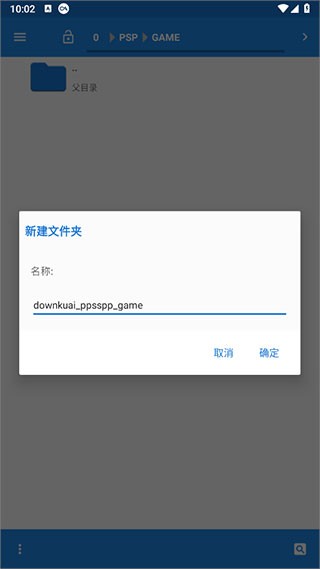 1、首先在手机文件管理器中新建一个文件夹,将下载的iso游戏文件放入该文件夹中,记住文件夹位置,例如:downkuai_ppsspp_game,