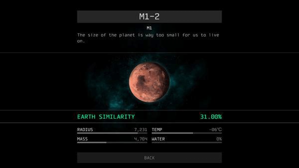 4、在游戏中通过寻找地球来不断牵引出故事的发展,但说实话寻找的过程并不是一个有趣的部分,游戏通过给玩家一个坐标,让玩家在坐标区域内寻找与地球类似的星体,玩家可以给这些找到的类似星体进行命名。