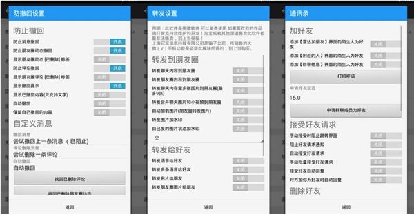 1、具有自动抢红包,一键转发朋友圈小视频、图片、文字,转发语音