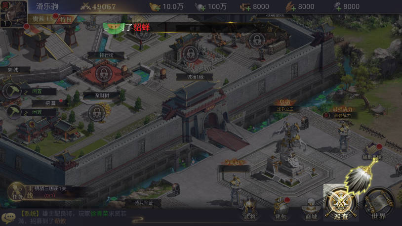 2、新玩家首次登录即可领取貂蝉、10w元宝、100w银两、贵族经验等等;