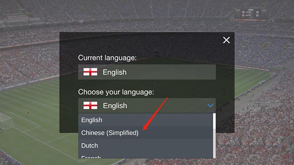 2、点击下拉,选择Chinese;