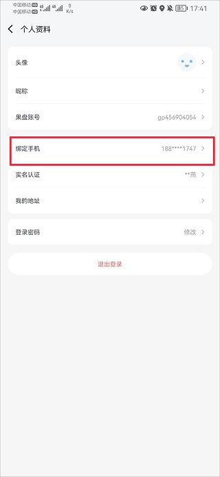 2、在个人资料界面中,点击绑定手机