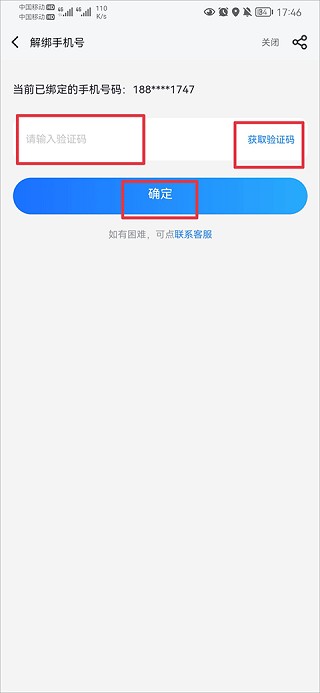 4、最后点击获取验证码并完成填写后,点击确定即可完成解除