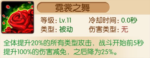 3、英雄平衡调整,霓裳之舞全体提升所有类型攻击增加,战斗开始提升的伤害减免减少;