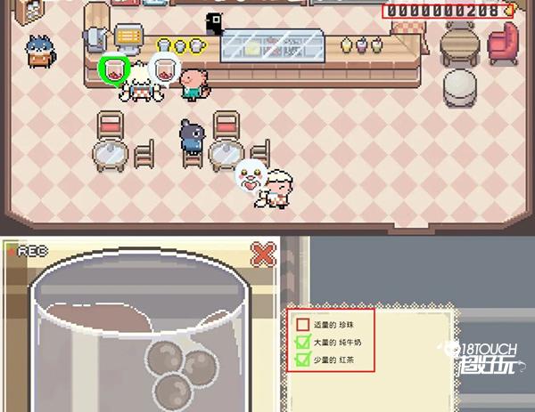 2、白天玩家需要经营奶茶店,在奶茶经营过程中玩家需要根据每位客人的订单标准进行奶茶的制作,各种材料的分量都需要按照要求加好,完成订单后即可获得金币奖励。