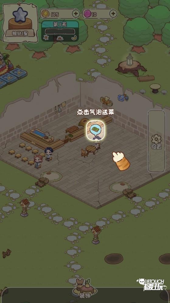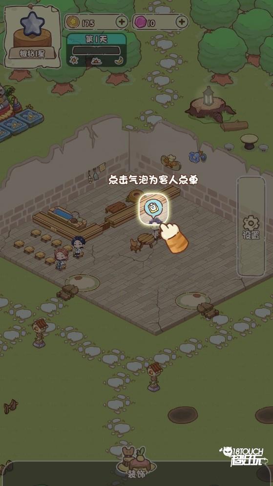 3、餐厅开业后,有客人进来,点击气泡为客人点单。