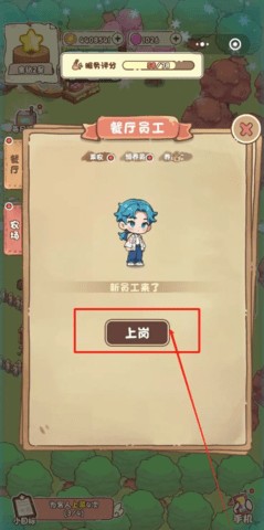 2、在餐厅的员工界面,点击农场的农民图标。