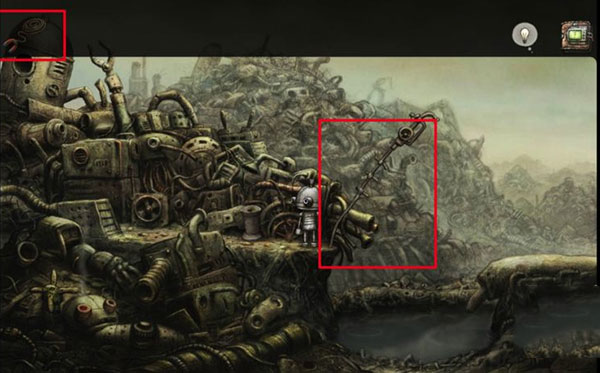 4、点击磁铁和线圈上缠绕的绳索,会收集到两个道具。点击最后一个竖着的管道,机器人会将它压弯;