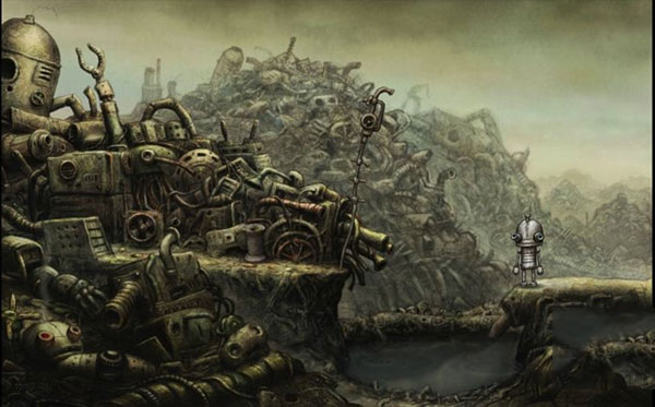 在《Machinarium》中的机器人们看起来意外的老旧、锈蚀,却因手绘的关系而让人感到独特的亲切感。这个城市里看起来一片和谐,也充满惊奇。