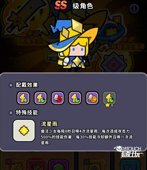 技能: 每8秒召唤4波流星雨,每波造成500%攻击伤害。技能冷却属性每达到30%,就能额外召唤一次。