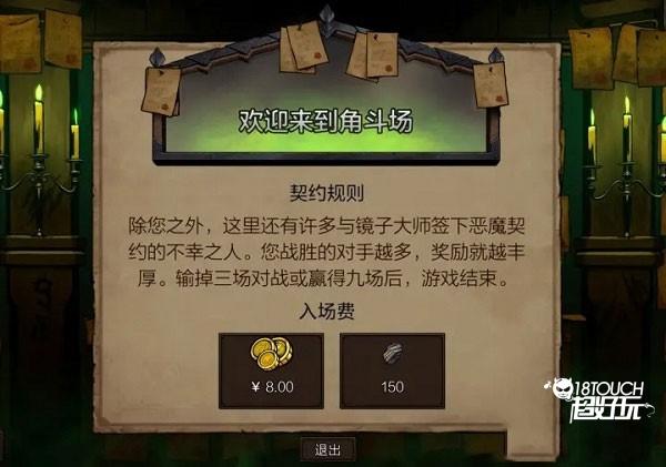 昆特牌的角斗场模式将在玩家达到 10 级后开放,通过支付150矿石或¥8购买门票“镜之残片”进入。第一次进入角斗场默认赠送一张门票。角斗场模式对于一个萌新快速熟悉认识卡牌大有裨益,因为不同于对战模式——出场率高的就那么几张牌——角斗场的卡池包含昆特牌已发行的所有卡牌。这意味着你有机会选到任何一张卡牌,不管它是否冷门。