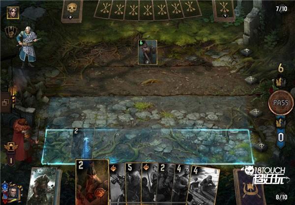游戏中的介面相当简洁,最下方的是玩家手牌(上限为10张),右边是玩家牌组(尚未抽出的牌)、左边是墓地(已经使用过或是阵亡的牌)。每位玩家的前方有两排战线,第1排是「近战」、第2排是「远程」,这两排的战斗力加总就是你该回合的得分,只要在该回合双方都按下PASS 或是打到没手排以后,战斗力大的那方就可以获得该回合的胜利。
