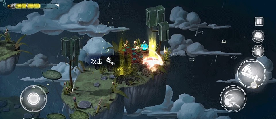 战斗系统主打“轻攻击+翻滚”的极简操作,但策略深度藏在节奏判定中:BOSS战需根据音乐鼓点闪避,蓄力斩击时机影响连招倍率。手残党可专注解谜,硬核玩家则能挑战无伤通关成就。
