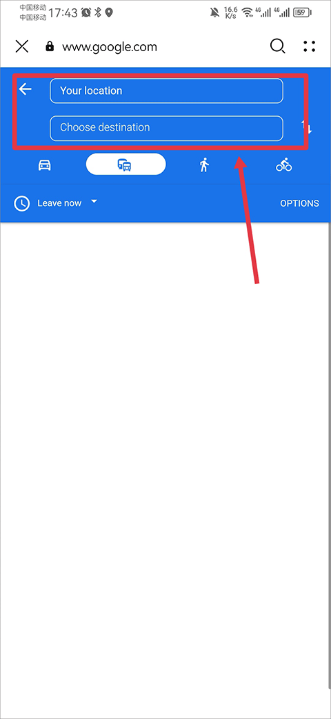 4、然后在上方输入你的起始点和终点,并选择你的行驶方式即可