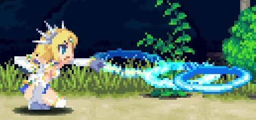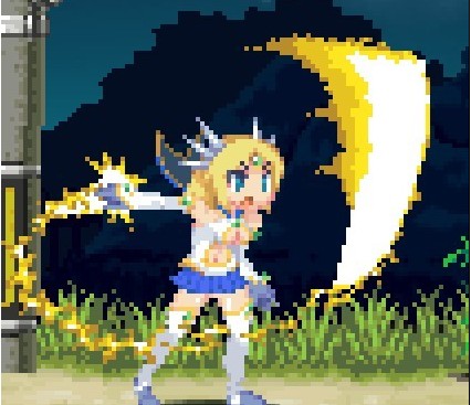 空中攻击转刀,米莉亚空战的精髓,范围超大,一次转刀可打出2次判定,配合米莉亚空中可跳6次每跳一下一个转刀简直酸爽,也可以一边跳一边大范围的移动防止被怪围