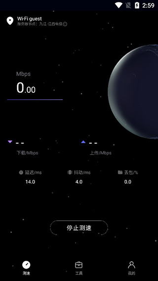 3、结果可以呈现Ping时延、上传、下载的速率,抖动,以及丢包率等数据;